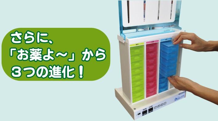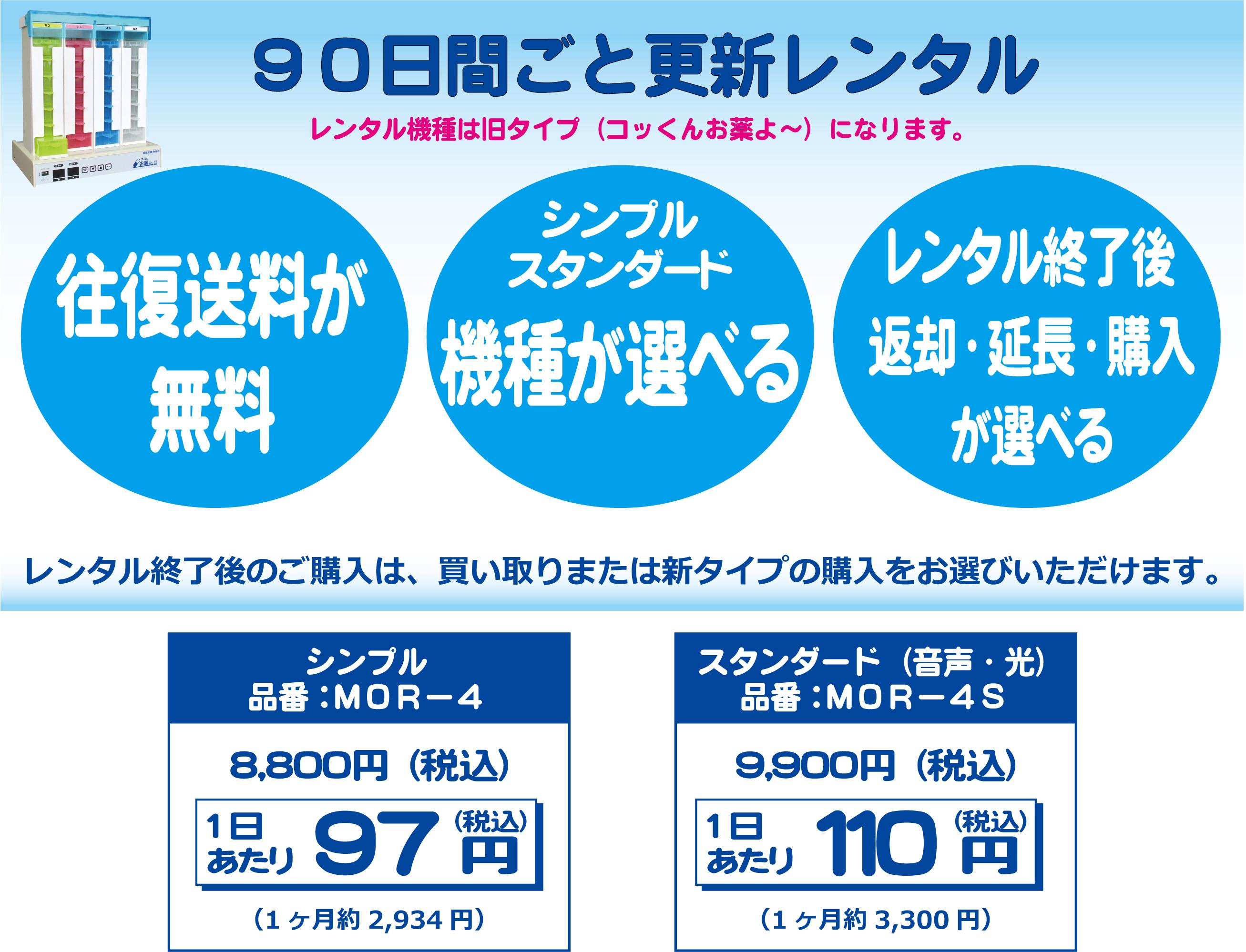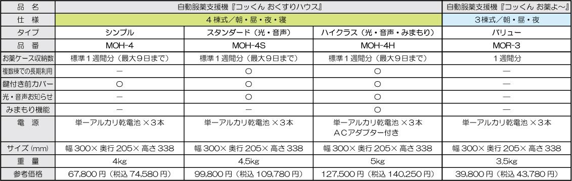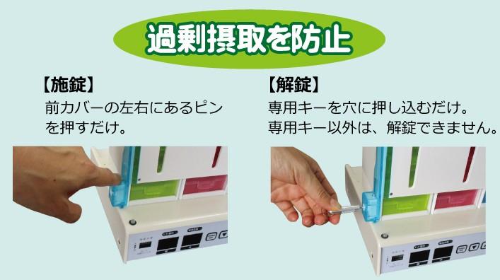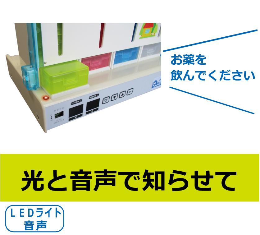 4棟すべてを同じ時刻に設定することで、1週間分のお薬を4週間分まとめて利用できます。・朝の棟 1週目/昼の棟 2週目/夜の棟 3週目/ねるの棟 4週目また、1日に2回お薬を飲む方の場合は、2棟ずつを同じ時刻に設定することで、1週間分のお薬を2週間分まとめて利用できます。・1週目:朝の棟 1回目/昼の棟 2回目・2週目:夜の棟 1回目/ねるの棟 2回目
